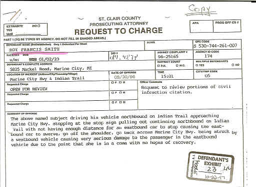 Protokoll von Roy Francis Smith bei der Staatsanwaltschaft St. Clair wird keine Ampel erwähnt